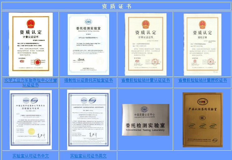 化學(xué)工業(yè)力車胎質(zhì)量監(jiān)督檢驗(yàn)中心1985年通過國(guó)家計(jì)量認(rèn)證,被原化工部授權(quán)為全國(guó)力車胎檢驗(yàn)中心,除承擔(dān)社會(huì)各界的委托檢驗(yàn)之外,一直承擔(dān)著全國(guó)力車胎(包括摩托車輪胎、自行車輪胎、手推車輪胎)行業(yè)的產(chǎn)品質(zhì)量監(jiān)督檢驗(yàn)工作,全國(guó)自行車輪胎、手推車輪胎的歷次定級(jí)、評(píng)優(yōu)、統(tǒng)檢工作。2002年摩托車輪胎強(qiáng)制性認(rèn)證及承擔(dān)歷年摩托車輪胎國(guó)家監(jiān)督抽查工作,同時(shí)為社會(huì)提供大量的貿(mào)易出證、產(chǎn)品質(zhì)量評(píng)價(jià)、成果鑒定的公證數(shù)據(jù)。