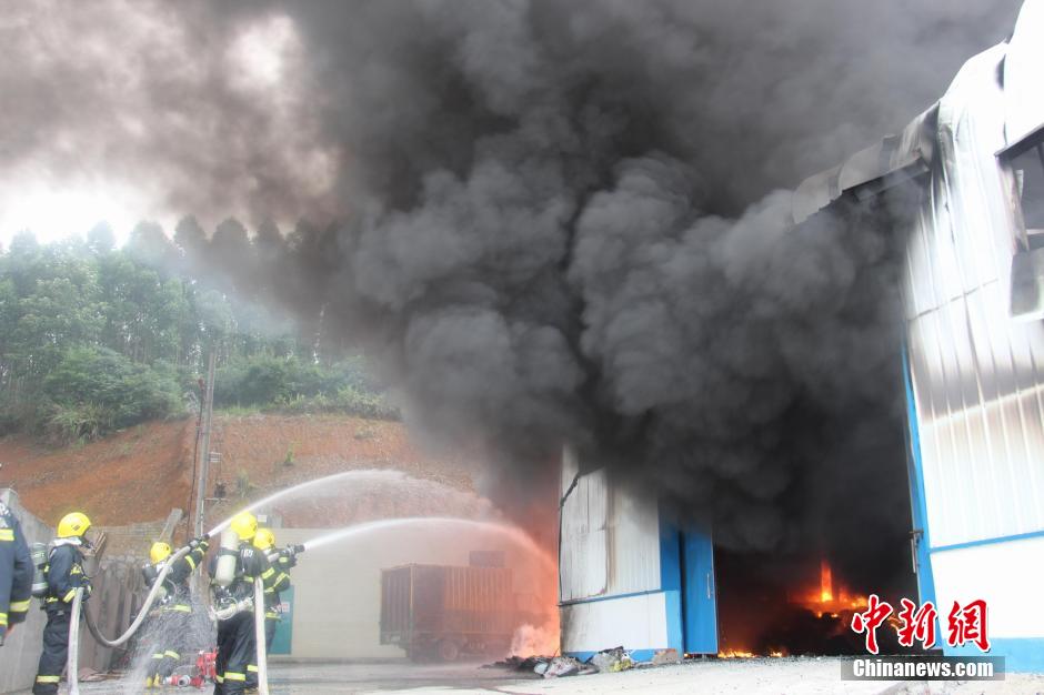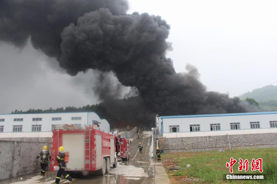 6月10日上午,位于廣西柳州市柳江縣洛維路的柳州乘風(fēng)汽車橡膠配件有限公司突發(fā)大火,800平方米倉庫內(nèi)大量橡膠材料燃燒并產(chǎn)生大量有毒濃煙迅速擴散,大火危及毗鄰廠房及山林。柳州市公安消防支隊調(diào)集8個消防中隊19臺消防車100余名官兵趕到現(xiàn)場進行撲救,經(jīng)過近六個小時奮戰(zhàn),成功將大火撲滅,火災(zāi)未造成人員傷亡。劉健強 攝